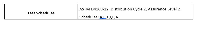 Can anybody recommend a testing laboratory who can conduct ASTM D4169-22 testing for Schedule IV Controlled Substances?  The samples need to be stored at 2-8°C prior to and after the ASTM D4169-22 ship conditioning tests.