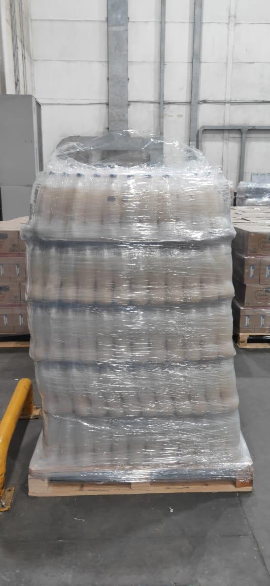 I currently have a rounded bottle with diameter 80.5mm, and bottle height is 300cm. The bottle weight is 32 grams, and the filling level is 1500ml. We apply only external shrink with configuration of 3*2 bottles (6 bottles per shrink) and the dimensions L*W*H of the configuration are 187.5mm281.3mm300mm. The current pallet factor for 120cm100 cm pallet is 22 shrinks per layer 4 layers (88 shrinks), and I was requested to have 5 layers instead of 4 layers. Pallets were prepared with 5 layers but I had static load faliure in the second and third layers. Are there any options to try to have the 5 layers successful? How can I calucalte the load on the bottles at the first layer of the pallet? Please find below photos for failed trial.